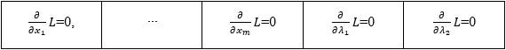 significa que realizaremos m+2 derivadas parciales de L; las acomodaremos como los componentes de un vector columna y las igualamos a un vector columna con ceros como componentes: