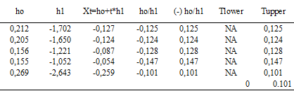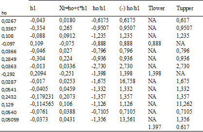 Los resultados del Cuadro 3 indican que existe una región donde la tecnología libre de riesgo toma valores de la desviación estándar entre 0.02 y 0.09, y los pesos de inversión son todos positivos. Para el resto del espectro existe cuando menos un valor negativo en la serie del vector X. En la región de valores todos positivos para el vector X destacamos cuando se toma el valor de 0.03. En este escenario, al cultivo de jitomate rojo le corresponde una participación de 16%; papa, 16%; frijol, 9.9%; zanahoria, 3.3%, y maíz, 56.7% aproximadamente.