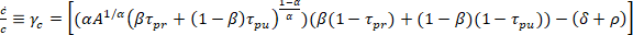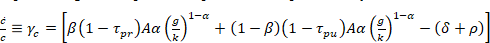 Sustituyendo la tasa impositiva óptima del sector público ecuación (14) en la tasa de crecimiento ecuación (13), se obtiene la tasa de crecimiento óptima: