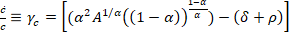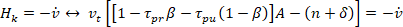 (22)Después de aplicar logaritmos a la ecuación (5), derivarla con respecto al tiempo y sustituir Hk(ecuación 22) en ella, se obtiene la tasa de crecimiento del consumo: