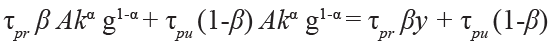 y, lo cual transforma en un volumen de bienes denotados por g, y en consecuencia, hay equilibrio fiscal.