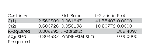 Dado que en las estimaciones econométricas existía la violación de los supuestos de homogeneidad y no autocorrelación, tenemos 76 datos (muestra grande) y estimamos la regresión con errores estándar condicionales, heteroscedásticos, autorregresivos (CHA) o Newey-West, para valorar las hipótesis de significancia de los parámetros de las variables consideradas; las hipótesis de no significancia son rechazadas. Los parámetros estimados fueron determinados para todo el periodo y por décadas; en algunos casos estas últimas regresiones fueron no significativas o implicaban estimaciones incorrectas, por lo cual en el Cuadro A1 sólo se incluyen los valores de α para las décadas de los setenta y noventa.