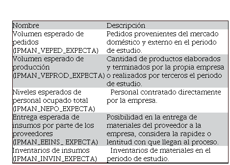 Respecto a las expectativas de los tomadores de decisiones en el sector nacional, se considera el indicador de pedidos manufactureros (IPMAN) a través de las variables que se muestran en el Cuadro 4.