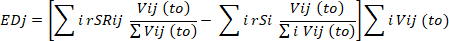 Una vez calculada la varianza relativa o el coeficiente de variación relativa, para el cálculo del indicador de cambio y participación (Shift and Share), se llevará a cabo el cálculo de tres efectos: 1) efecto total (ETj), 2) efecto estructural (EEj) y 3) efecto diferencial (EDj), que a su vez calculan tres componentes que son: cociente de variación del sector (rSi), cociente de variación de la dinámica regional (rRj) y cociente de variación global (rSR).