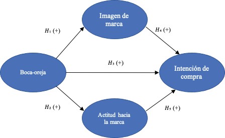 La intención de adquirir cualquier tipo de producto, marca o servicio es definida para este trabajo como intención de compra. Asimismo, los consumidores basan esa toma decisión en diferentes detonantes, como se expuso en el primer apartado de la revisión teórica, ya que el BOE juega un rol importante en la formación de la imagen de marca (Farzin y Fattahi, 2018; Jalilvand y Samiei, 2012; Kala y Chaubey, 2018; Nuseir, 2019) por lo que hablar dentro de las redes sociales mejora la percepción de las empresas en el consumidor. Esta asociación positiva también se da entre el boca-oreja y la intención de compra (Liu et al., 2019; Prasad et al., 2019; Yuan et al., 2020) ya que leer información en las redes sociales sobre productos o servicios tiene una influencia sobre la intención de compra final del consumidor, por lo que, basado en la revisión de la teoría, se espera que relación entre la imagen de marca también tenga una relación positiva con la intención de compra, por lo que se propone la siguiente hipótesis: