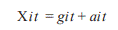 (2)Donde gi ty ai t representan los componentes permanentes y transitorios, respectivamente, en un marco que puede incluir procesos lineales, no lineales, estacionarios y no estacionarios. Como esta especificación puede contener componentes idiosincráticos y comunes en ambos elementos gi ty ai t, se puede separar la parte común de la idiosincrática de dichos componentes en el panel, realizando la siguiente transformación de (2),