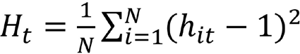 (4)Dondehit es el parámetro de transición relativo, que captura la ruta de transición para el promedio del panel en el momento t. Es decir, traza un camino de transición del individuo i respecto al promedio del panel. En este sentido, para probar la convergencia, Phillips y Sul (2007) proponen un enfoque semiparamétrico y asumen la siguiente forma general del coeficiente: ,