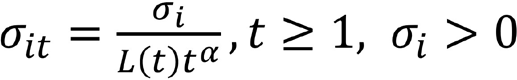 , para toda i. Donde L(t) es una función que cambia lentamente. De acuerdo Phillips y Sul (2007), hay la convergencia si α≥0 y la hipótesis nula de convergencia como H0:δt=δi y α≥0, en contra de la alternativa Hα:δt≠δ y α ≥ 0 para toda i o α < 0. De esta manera, el t-test para la hipótesis nula de convergencia, puede ser realizado a través de la siguiente ecuación: