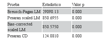 Nota: la hipótesis nula es que no hay dependencia de sección cruzada para las tres pruebas.