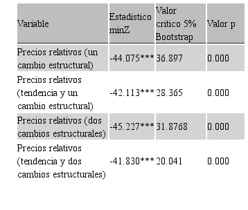 Palabras clave: precios relativos, cambio estructural, raíz unitaria, convergencia.