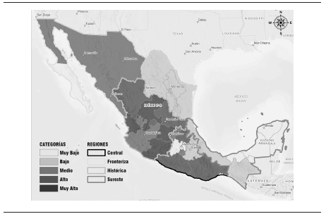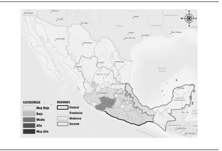 Conapo (Consejo Nacional de Población) (2012). Índice de Intensidad Migratoria México-Estados Unidos por entidad federativa y municipio 2010, Secretaría de Gobernación, México. https://tinyurl.com/4yntcrpw