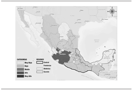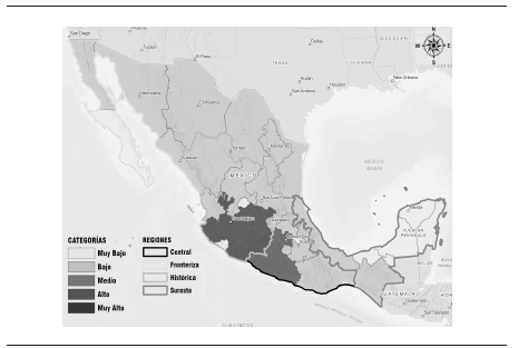 En la región Histórica la mayor parte de los estados tuvieron GIM alto y muy alto. En la región Fronteriza los estados tenían GIM entre medio y muy bajo. En la región Central los GIM de los estados se colocaban entre muy bajo y alto. En cuanto a la región Sureste los GIM de los estados se ubicaron entre bajos y muy bajos, lo que caracterizó a esta región como la de menor intensidad migratoria. Para 2020, la región Histórica continuó concentrando en sus estados los mayores grados de intensidad migratoria. La región Fronteriza fue la de menores movimientos y la región Central la de los mayores principalmente a la baja del GIM. En la Sureste el único cambio fue en Chiapas que aumentó. Por lo tanto, se puede concluir que se observaron cambios en la configuración del mapa de la intensidad migratoria para 2020, pero no tan grandes como para cambiar el predominio de la región Histórica y la regionalización de la migración que se utiliza en este trabajo.