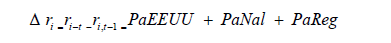 Δ ri : Cambio de remesas en una región o estado en un período de tiempo