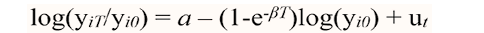 La estimación de la convergencia β se sustenta en el uso de la econometría tradicional, en particular se hace uso de corte transversal y datos panel. Usualmente para calcular la beta convergencia absoluta se estima la siguiente ecuación: