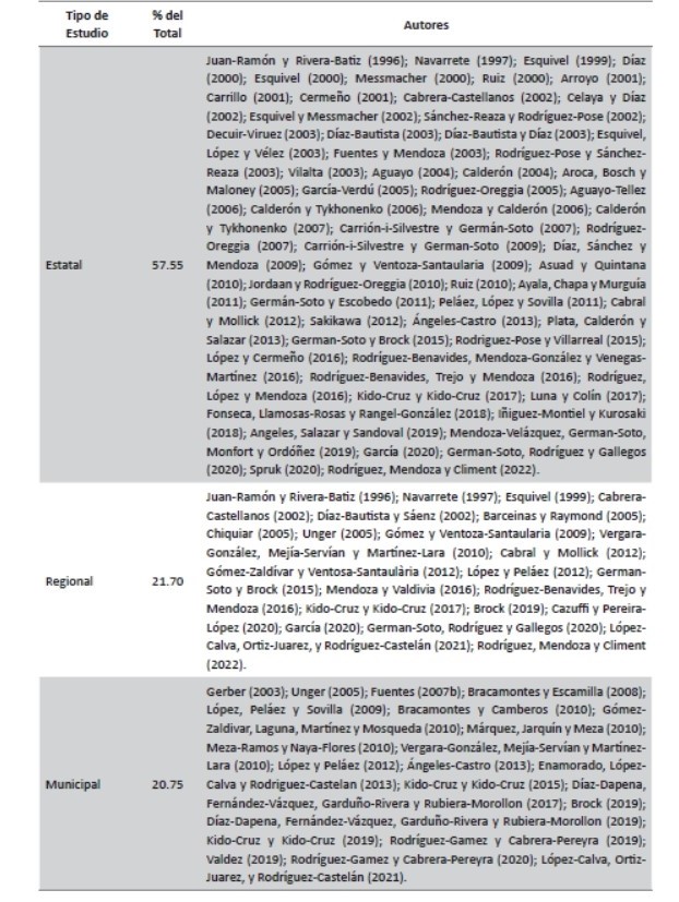 Para lograr el objetivo de este documento, se llevó a cabo el análisis de 88 estudios publicados entre 1996 y 20224. Se debe resaltar que la literatura sobre convergencia es bastante amplia por lo que solamente se analizan algunos trabajos, lo cual no significa que los trabajos no presentados en este artículo sean de menor importancia. En el cuadro 1 se presentan todos los estudios analizados. A nivel estatal los estudios analizados fueron 61, a nivel regional 23 y a nivel municipal 22.