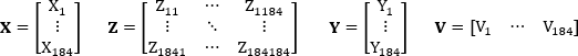 Where X is a gross output value vector of order 184x1, Z is the cross-sectoral transaction matrix of order 184x184, Y is the final demand vector of order 184x1, and V is the value-added (VA) vector of order 1x184.1