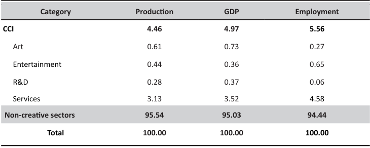 The challenge in defining this activity type has also led to a lack of clarity on how to measure it, as there is no well-established consensus on which industries and/or services should be considered part of the creative sector. Classifications vary widely; for example, in 1998, the DCM initially identified thirteen sectors within the creative industries, including traditional cultural activities such as radio, television, photography, music, and visual and performing arts. Different classifications exist; for instance, the World Intellectual Property Organization (WIPO, 2022) proposed eighty sectors related to copyright protection, the United Nations Conference on Trade and Development (UNCTAD, 2010) suggested seventy-one industries, the Orange Economy has forty-five sectors, the United Nations Educational, Scientific and Cultural Organization (UNESCO, 2013) identified thirty-seven sectors, and the European Union outlined twenty-five sectors within a classification focused on the cultural and creative industries most related to the digital economy (UNCTAD, 2024). The accumulation of inaccuracies in understanding what CCIs are and how they are measured also hampers identifying these sectors’ roles in the economy. UNCTAD (2024) regularly assesses the economic contribution of CCIs; its latest 2024 report shows they account for between 0.5% and 7.3% of GDP, 0.5% to 12.5% of employment, and export a substantial amount of goods and services. Despite this assessment effort, these reports are highly aggregated and cannot capture the impacts that, at least in theory, are attributed to these industries. For example, it has been recognized that their macro impacts are more significant than those of traditional sectors; they foster innovation and have substantial direct and indirect effects on the economy (Boix-Domènech et al., 2018).
