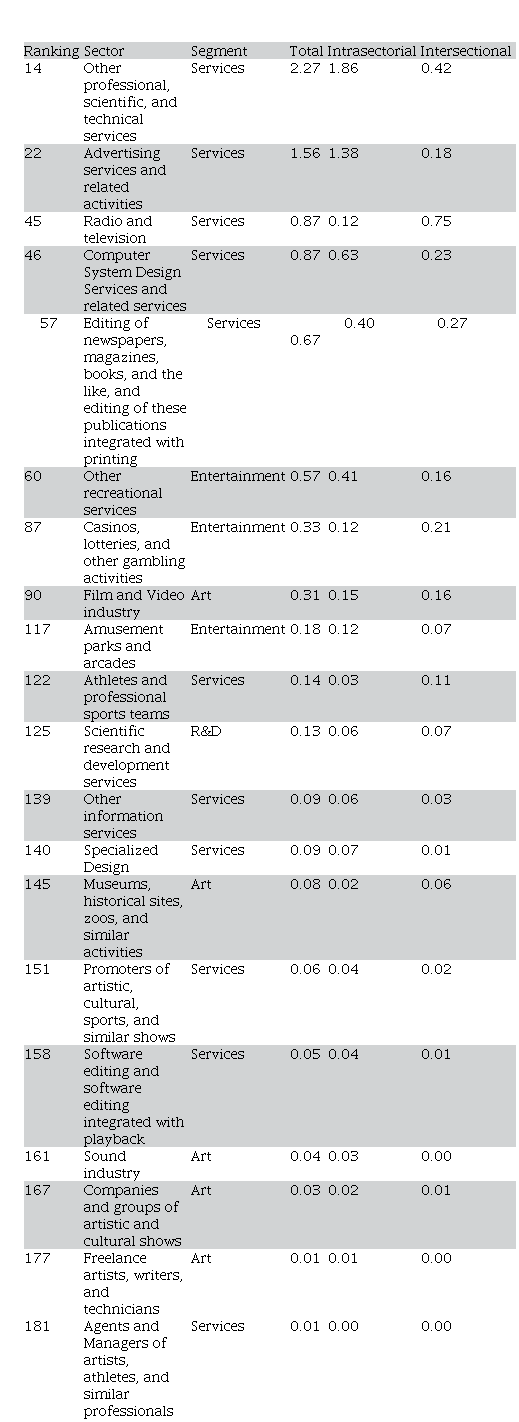 Keywords: economic assessment, creativity, input-output, production chains, hypothetical extraction model.