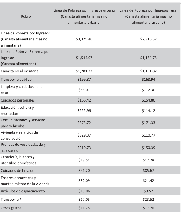 De acuerdo con el INEGI (2020), que toma como referencia las estimaciones del Consejo Nacional de Evaluación (CONEVAL) para las líneas de pobreza por ingresos, en uno de sus rubros consigna el ingreso mensual que debería tener una persona para la satisfacción de necesidades relacionadas con el consumo cultural. En la tabla 3 es posible constatar que ese monto mensual es equivalente a $222.96 pesos para el ámbito urbano y a $114.12 pesos para el ámbito rural.
