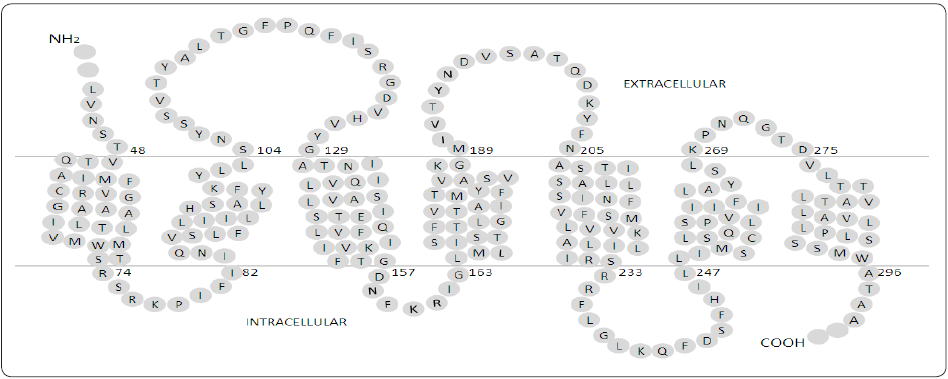 The first studies on Ste2p were reported in 1970-1980 when the molecular basis of mating in yeast cells was discovered. Many genes rendering a sterile (STE) phenotype were discovered, and among these was STE23,4 that was further cloned and characterized5,6. A few years later, the topological structure of Ste2p was inferred through solvent accessibility studies (Figure 1). Due to difficulties to purify and crystallize integral membrane proteins, the atomic three-dimensional structure of Ste2p has not yet been determined. However, NMR was used to determine the structures of two fragments of this receptor: the HI-H2 segment (Protein Data Base entry code: 2K9P), and a segment of H6 (PDB entry code: 1PJD)7,8.