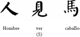 El Cuadro 5, con el ejemplo sustraído del libro El carácter de la escritura china como medio poético (Fenollosa y Pound, 2001), muestra, no sin razón, que los caracteres chinos poseen una dimensión más, una capa significativa más vertical que lo lineal, que lo sucesivo, mejor dicho, con lo cual los idiomas fono-sintácticos no pueden igualarse. La arbitrariedad que se observa entre las palabras y los sonidos del inglés y el español hace denotar los tres términos de nuestro conocimiento, mientras que los caracteres, además, destacan una totalidad de lo que trata el escenario que implican, en el cual podemos entrever a un hombre dando vuelta a la cabeza para mirar a un caballo, porque: