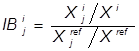 es el valor de las exportaciones de la industria j para los países de referencia, Xi son las exportaciones totales del país j, y Xref las exportaciones totales del grupo de países de referencia, entonces el índice de Balassa de VCR para la industria j,