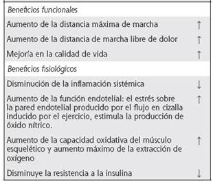 Las guías internacionales coinciden en que la marcha es el tratamiento más eficaz y menos costoso para mejorar la claudicación intermitente (programa de ejercicio supervisado por un periodo mínimo de 30-45minutos, por lo menos tres veces por semana, por un periodo mínimo de 12 semanas, preferiblemente 6 meses o más). Se necesitan más estudios para comprender y valorar la relación entre pacientes con EAP y ejercicio.