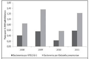Conclusion: Klebsiella pneumoniae bacteremias are a serious problem in our hospital, with specific risk factors, treated adequately most of the time, but with a high lethality rate.