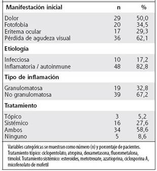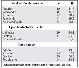 Methods: Retrospective analysis of data obtained from 58 patients referred between January 1, 2010 to September 30, 2013 to the Uveitis Clinic, Hospital Mexico, Costa Rica.