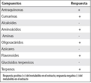 El estudio fitoquímico cualitativo realizado, permitió determinar la presencia de ciertos grupos funcionales de compuestos, los cuales se resumen en el Cuadro 4.