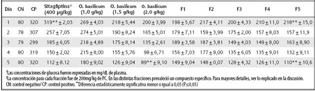 Efectos producidos por la administración del extracto metanólico de la albahaca y sus fracciones sobre la glicemia