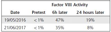 ITI should always be continued for at least 9 months and no more than 33-36 months according to different authors.2,3,7 In our patient the recovery of FVIII in plasma was normalized within eight months after the initiation of ITI; nevertheless, therapy was continued until September 2016 in order to complete a full year of therapy and by that time FVIII inhibitors were measured again, turning back negative.