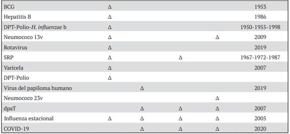 En Costa Rica, la vacunación se inició en el siglo XIX (1805, Cartago, con la Expedición de Balmis) con el uso de la vacuna contra la viruela (cuadro 1). Como resultado de un esquema nacional de vacunación efectivo desaparecieron viruela, fiebre amarilla, polio, tétanos, difteria, sarampión, rubéola congénita, tétanos neonatal y meningitis bacteriana. Además, se emprendieron iniciativas de salud pública para prevenir el cáncer de cérvix, la diarrea por rotavirus, la transmisión del virus de la hepatitis B y de la varicela, así como la mortalidad por influenza estacional y la pandemia por SARS-CoV-2.