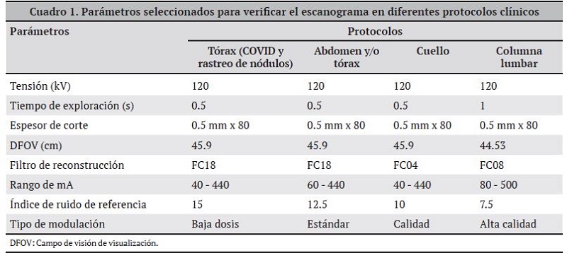 Según el fabricante del tomógrafo, los parámetros predeterminados en este protocolo clínico tienen la finalidad de realizar estudios en pacientes con COVID y para rastreo de nódulos.