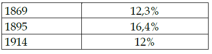 La política pública anterior a 1930 trató no sólo de aumentar la oferta de mano de obra, sino también su calidad. De la población cuya edad oscilaba entre los seis y los trece años, solo el 20% iba en 1869 a la escuela. Aquel porcentaje se elevó a 31% en 1895 y al 48% en 1914” (Diaz Alejandro, 1970, p. 40).