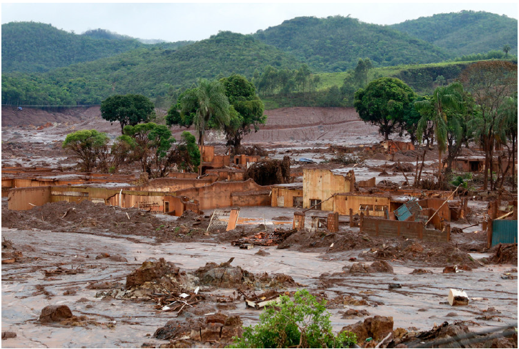 Dentre numerosas consequências, o desastre causou a destruição de infraestrutura pública e privada; degradação ambiental da fauna e da flora; devastação de territórios indígenas e ribeirinhos; “desalojou mais de 600 famílias em Mariana e Barra Longa e tirou, com o tsunami de rejeitos, a vida de 20 pessoas (já que um aborto não foi considerado pela empresa)” (Senna e Carneiro, 2019: 4). Gerou desdobramentos econômicos, ambientais e socioespaciais dos quais enfatizamos a destruição do subdistrito de Bento Rodrigues (Figura 2 e Figura 3) e a expulsão da comunidade pela devastação de seu território.