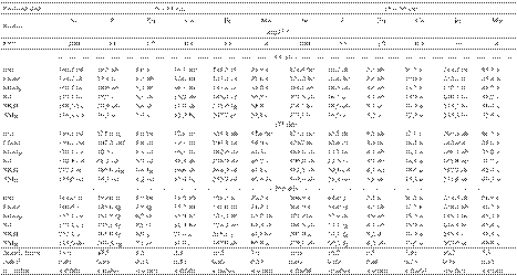 Los contenidos de los nutrimentos Al, Fe, Cu, Zn, Mn y B presentaron mayores tendencias en las pruebas con mayor crecimiento. El Fe y Al mostraron la mayor concentración según el abc en Simag y difieren en α = 0,05 del resto de los tratamientos. El Cu evidenció la mayor abc (267,5) en Simag y no presentó diferencias al resto de las pruebas a excepción del Llane, el cual presentó el menor contenido de Cu (193,6). El contenido de Zn fue mayor en Simag y SiF (333,1 y 304), estos difieren estadísticamente de los demás experimentos. El Mn y B revelaron el mayor contenido en el testigo y no difieren cuantitativamente del Simag, los demás ensayos evidenciaron la menor concentración en estos micronutrimentos.
