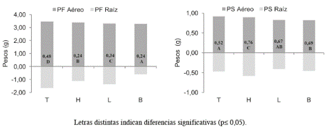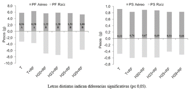 Los diferentes resultados encontrados en los tratamientos en cuanto a índice R/T seco y fresco (particularmente en el caso del hongo y la bacteria), y en relación con el testigo, constituyen un indicador de que los microorganismos afectan el crecimiento y la producción de materia seca, lo cual concuerda así, con lo reportado por Echeverría (2012), López et al. (2008), Martínez-Viera et al. (2007) y Zaady y Perevolotsky (1995).
