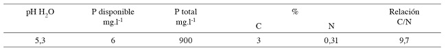 En el presente ensayo se utilizó un Andisol entre los 1400 y los 2000 msnm, lo cual lo ubica en el piso altitudinal medio (régimen údico isotérmico), donde se da una alta retención de P (Alvarado et al. 2001). Además, Soto (1998) menciona que en los Andisoles de Costa Rica la cantidad de P total a una profundidad entre 0-0,4m oscila entre 817 y 5460 mg.kg-1.