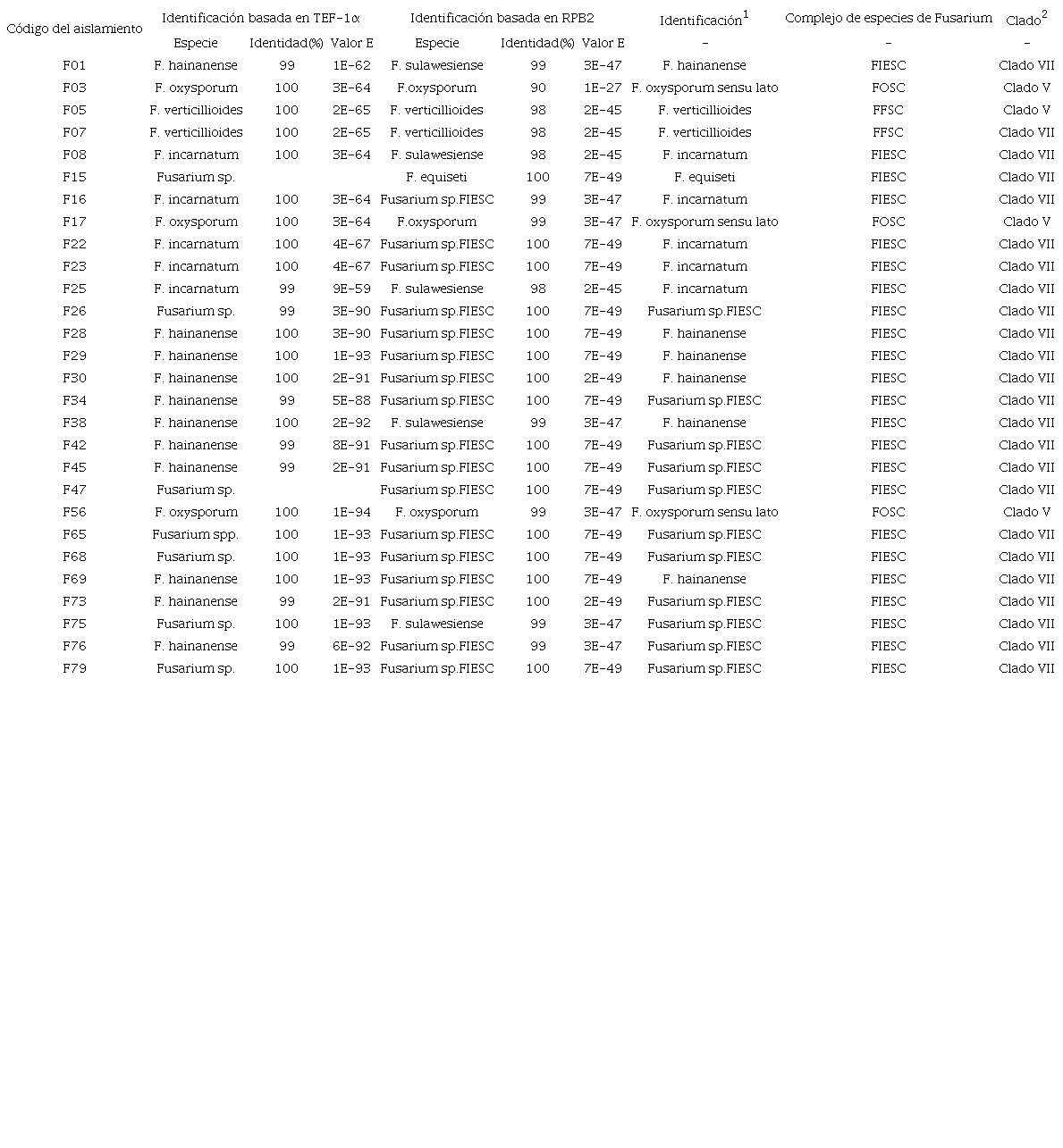 FIESC = complejo de especiesFusarium incarnatum-equiseti, FFSC = complejo de especiesFusarium fujikuroi, FOSC = complejo de especiesFusarium oxysporum.