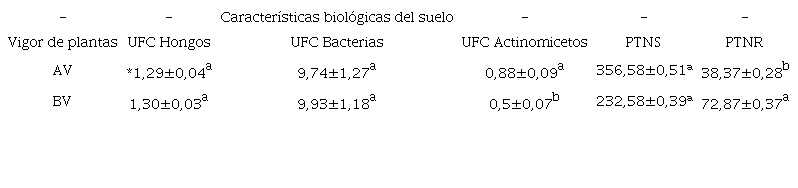 El carbono microbiano ha sido frecuentemente estudiado por su alta y rápida sensibilidad a los cambios que se producen en el sistema y, además, porque es uno de los pocos que controla parte de los procesos que involucran la transformación y el ciclado de nutrientes, así como la macroagregación, lo cual favorece la retención de agua y la aireación del suelo (Pérezet al.2017, Renet al.2019). Variables como carbono microbiano están asociadas a la cantidad y actividad de los microorganismos del suelo (Velmourougane 2016, Yanget al.2017, Vurukondaet al.2018). En tal sentido en lotes de alto vigor, el carbono microbiano se encontró con valores más altos.