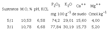 Para los sustratos se utilizó un suelo fersialítico pardo rojizo (Hernández et al. 1999) y abono orgánico procedente del compostaje de la pulpa de café (Coffeaarabica L). Las mezclas preparadas se caracterizaron por tener buena fertilidad (Tabla 1).