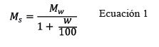 Con los datos de peso de muestra en campo (Mw ) y su correspondiente porcentaje de humedad gravimétrica (w), se determinó la masa de sólidos (Ms ) mediante la siguiente ecuación: