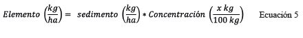 4) Si la concentración (N, MO) se expresó en unidades de porcentaje (%) se calculó la cantidad de elemento mediante la siguiente igualdad: