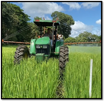 The application of PGR is usually sprayed. The spraying conventional methods used in Costa Rica are: 1) backpack sprayer for small areas, 2) planes or helicopters for areas with obstacles or heterogeneous and 3) tractor-based spray boom (SB) for large areas (Jiménez Salas 2015). However, soil compaction, destruction of rice fields where the tractor’s tires go through (Gómez and Rodríguez 2019), high consumption of water and fossil fuels and deposition drifts (Wang et al. 2018), are involved during tractor-based SB operations.