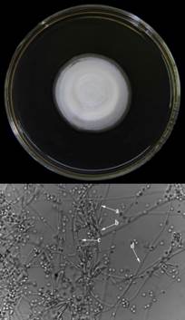 Estas colonias exhibieron un crecimiento rápido, alcanzando diámetros de 6 a 8 cm en tan solo cinco días, y posteriormente cubrieron por completo la superficie de los medios de cultivo de 9 cm de diámetro.