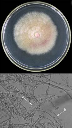 En el caso de F. solani (Fsol) procedente de muestras de suelo del cantón de Guácimo, mostró a partir del quinto día de incubación, abundante micelio aéreo, algodonoso y blanco con pigmentación en la base color rojizo (Figura 4).