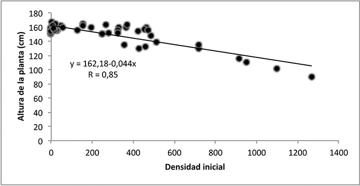 El incremento en la altura de las plantas en presencia de bajas poblaciones de nematodos, puede explicarse según el modelo de Seinhorst (1968), que indica que los nematodos fitoparásitos tienen dos efectos sobre las plantas, uno de estimulación y otro de inhibición. Adicionalmente, Wallace (1971) propuso que cuando el proceso estimulatorio es mayor que el inhibitorio la planta afectada por nematodos muestra un mayor crecimiento en comparación con plantas sin nematodos. Este tipo de comportamiento está acorde con lo reportado en otros cultivos como banano (Chávez-Velazco et al. 2009) y café (Morera y López 1987), los que presentan mejor desempeño en presencia de nematodos que en su ausencia.