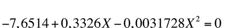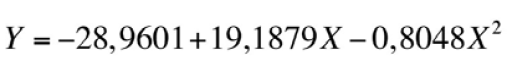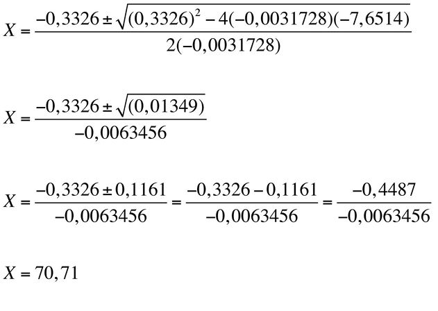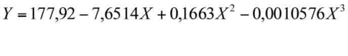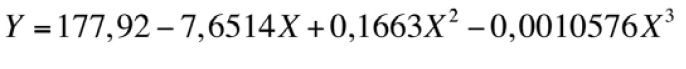 Y = 177,92 – 7,6514 (70,71) + 0,1663 (70,71)2 – 0,0010576 (70,71)3