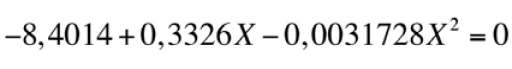 La solución (para X) de estas dos funciones, se obtuvo por el método algebraico de la fórmula general. El valor de X para el NOT (Cuadro 2) fue como sigue [9]: